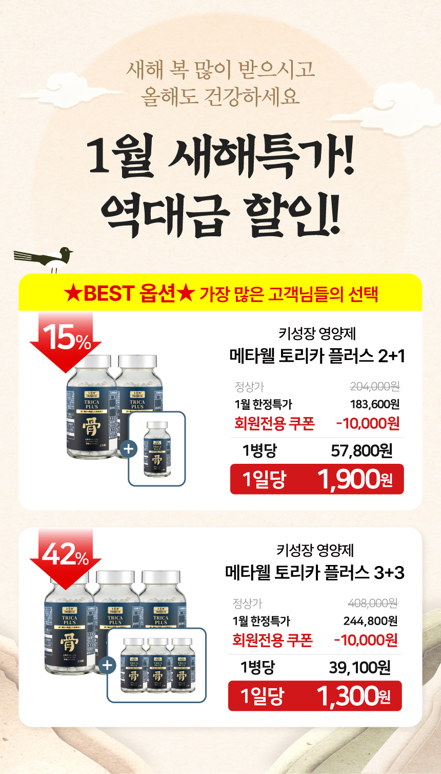하루에 1300원으로 챙기는 프리미엄 칼슘 (409mg) 토리카 플러스를 지금 만나보세요