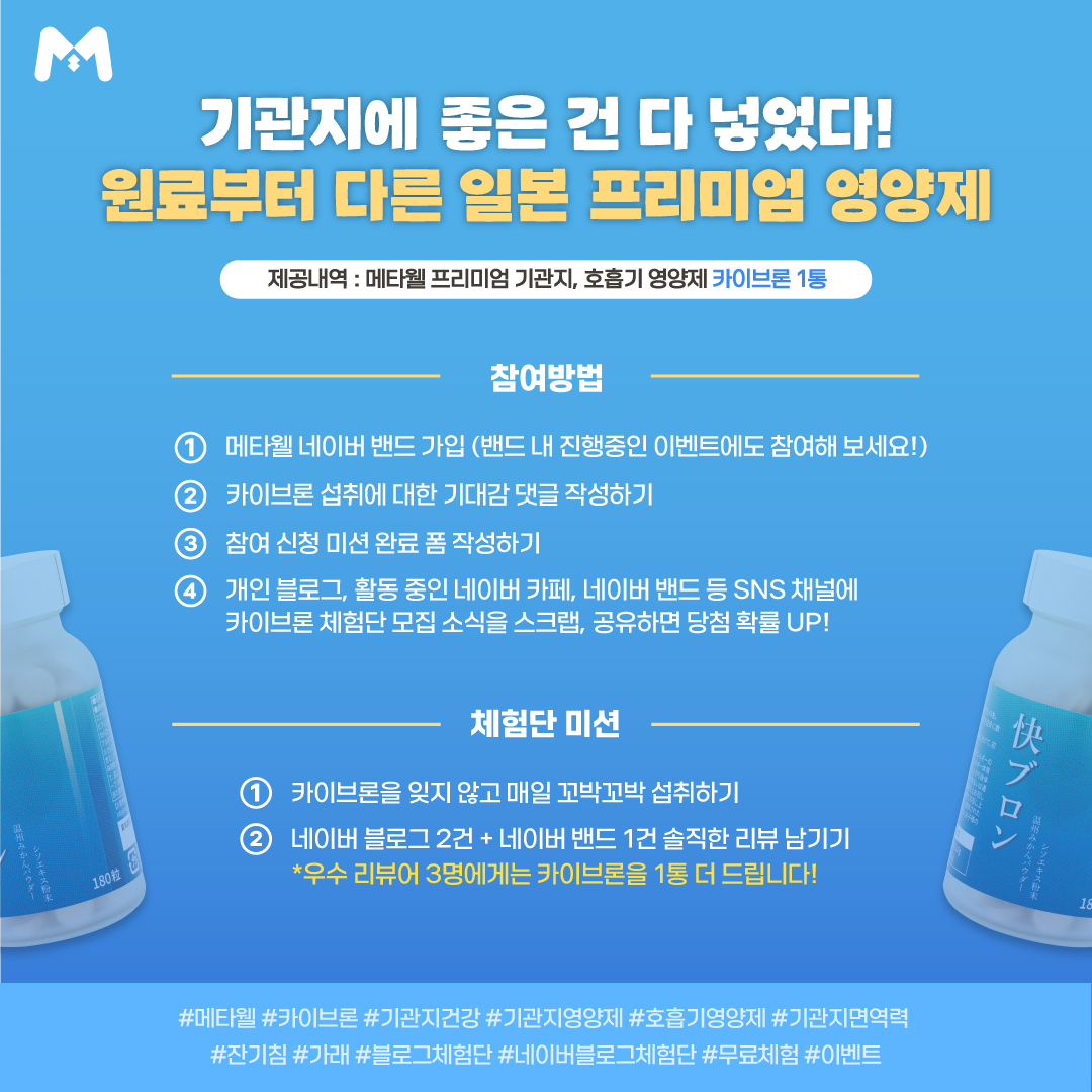 네이버 블로그 체험단 이벤트 블로그 이벤트 진행 일본 프리미엄 영양제를 큐레이션 메타웰 카이브론 이벤트
