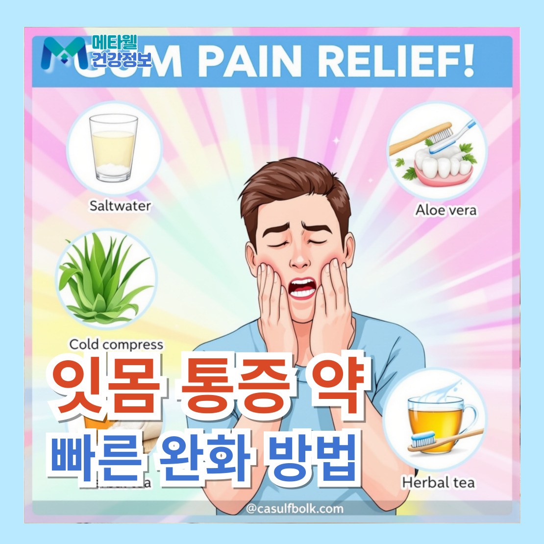 - 국소적 진통제: 치통뿐만 아니라 잇몸 통증 완화를 위한 임시 방편으로 사용됩니다.
