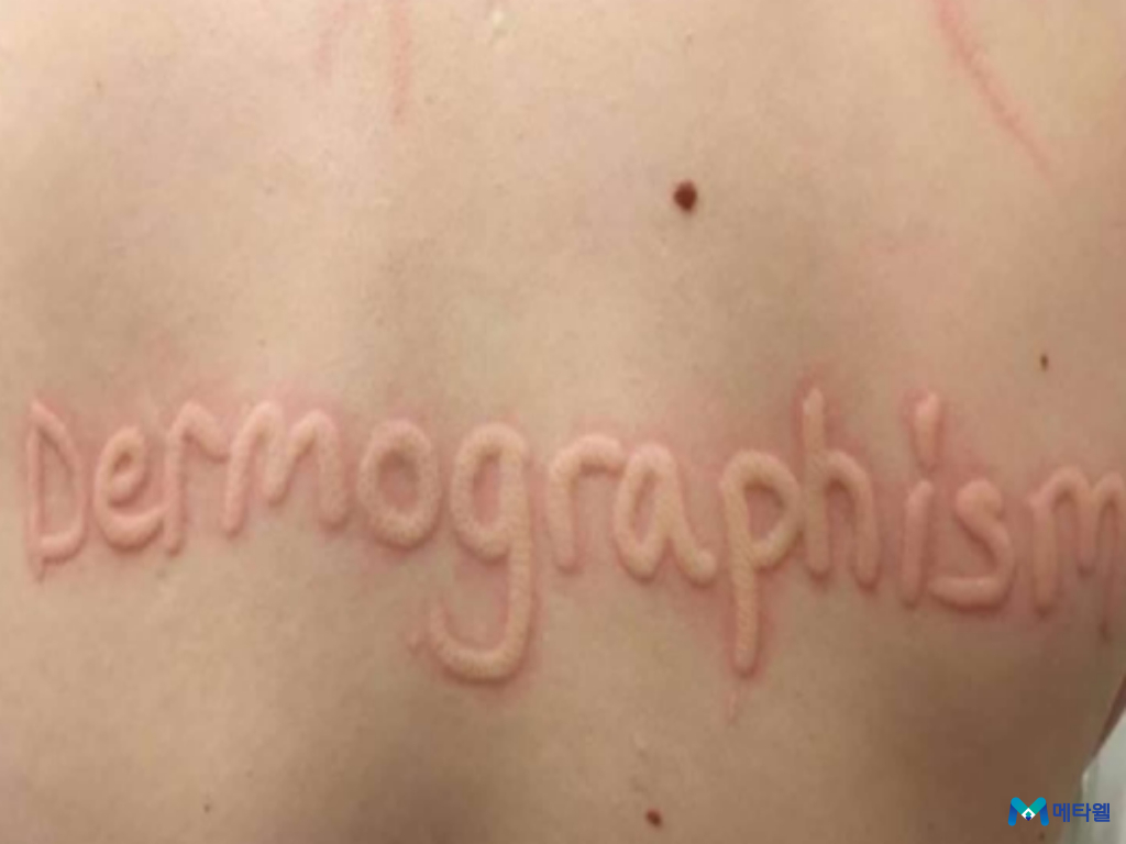 손톱으로 눌러서 글씨를 썼을 때 모양 그대로 피부가 부풀어 오른다면 피부묘기증을 의심해 보세요!