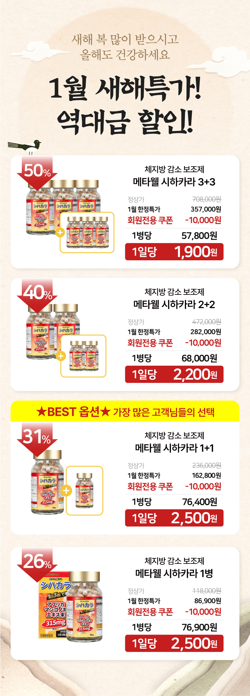 ★새해특가 최대50%할인★메타웰 체지방 감소 다이어트 보조제 시하카라